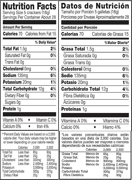 Saltine Crackers Nutrition Facts Treeleo