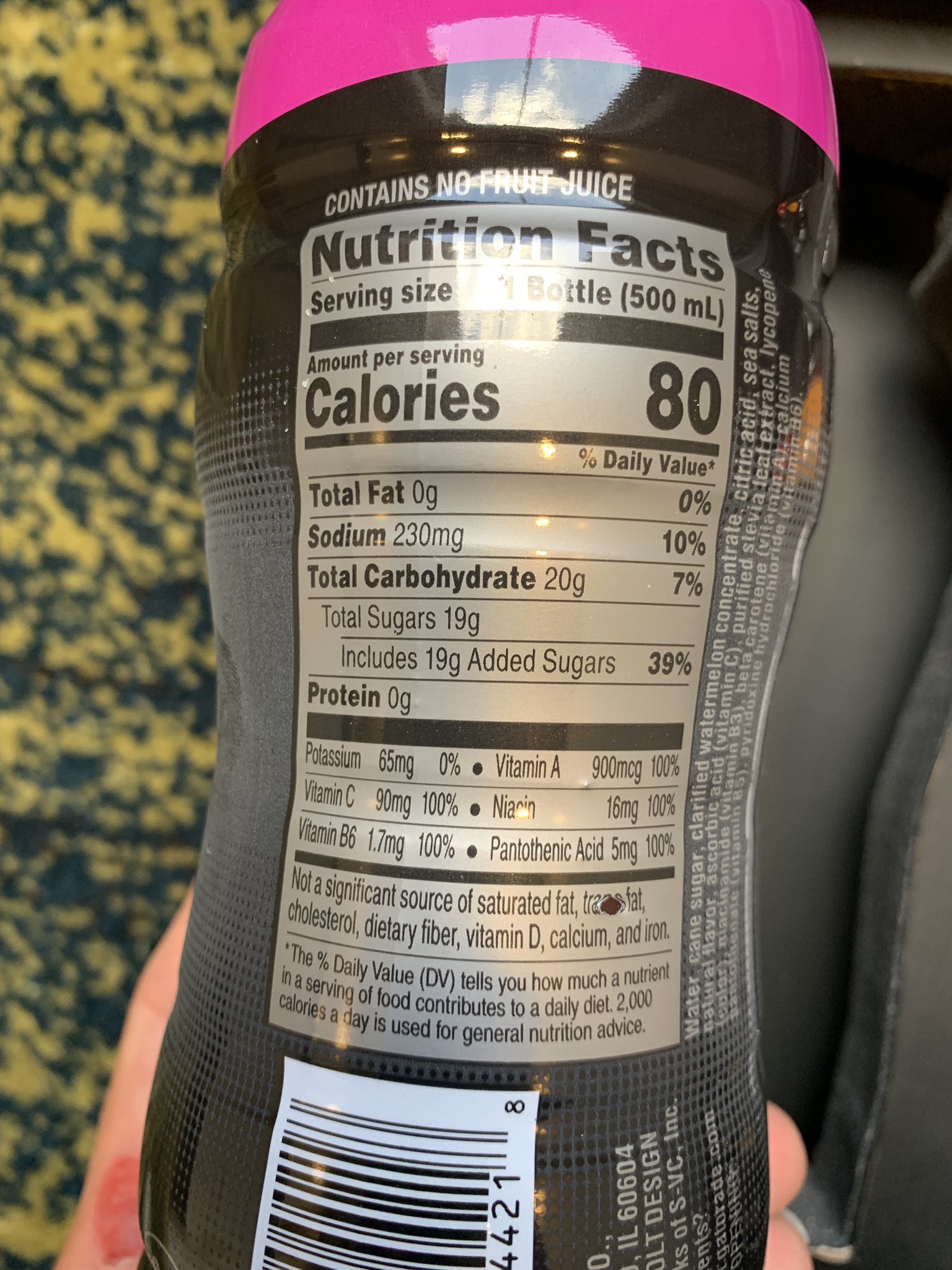 Pkg Size 169oz bottle. 169 Fl Oz Pack of 12 50 out of 5 stars. It delivers electrolytes from watermelon and sea salt as well as 100 of the daily value of antioxidant vitamins A and C and vitamins B3 B5 and B6 with no artificial sweeteners or flavors.